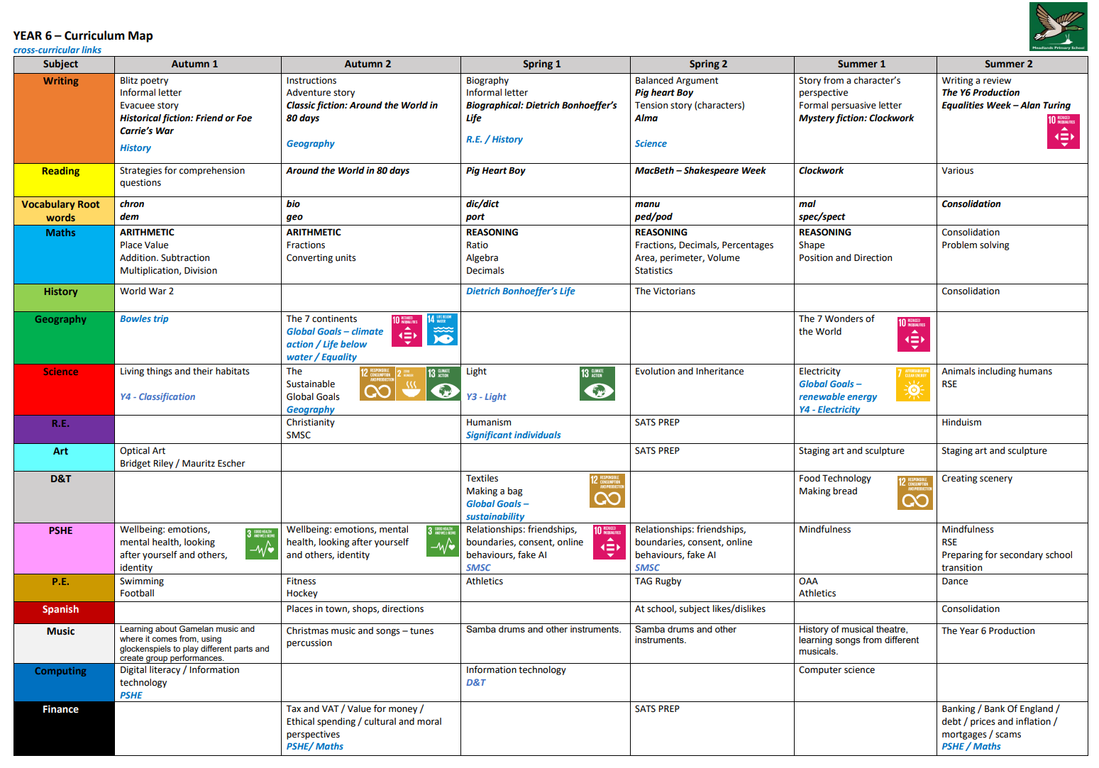 End of year objectives (what children should know by the end of Year 6!)