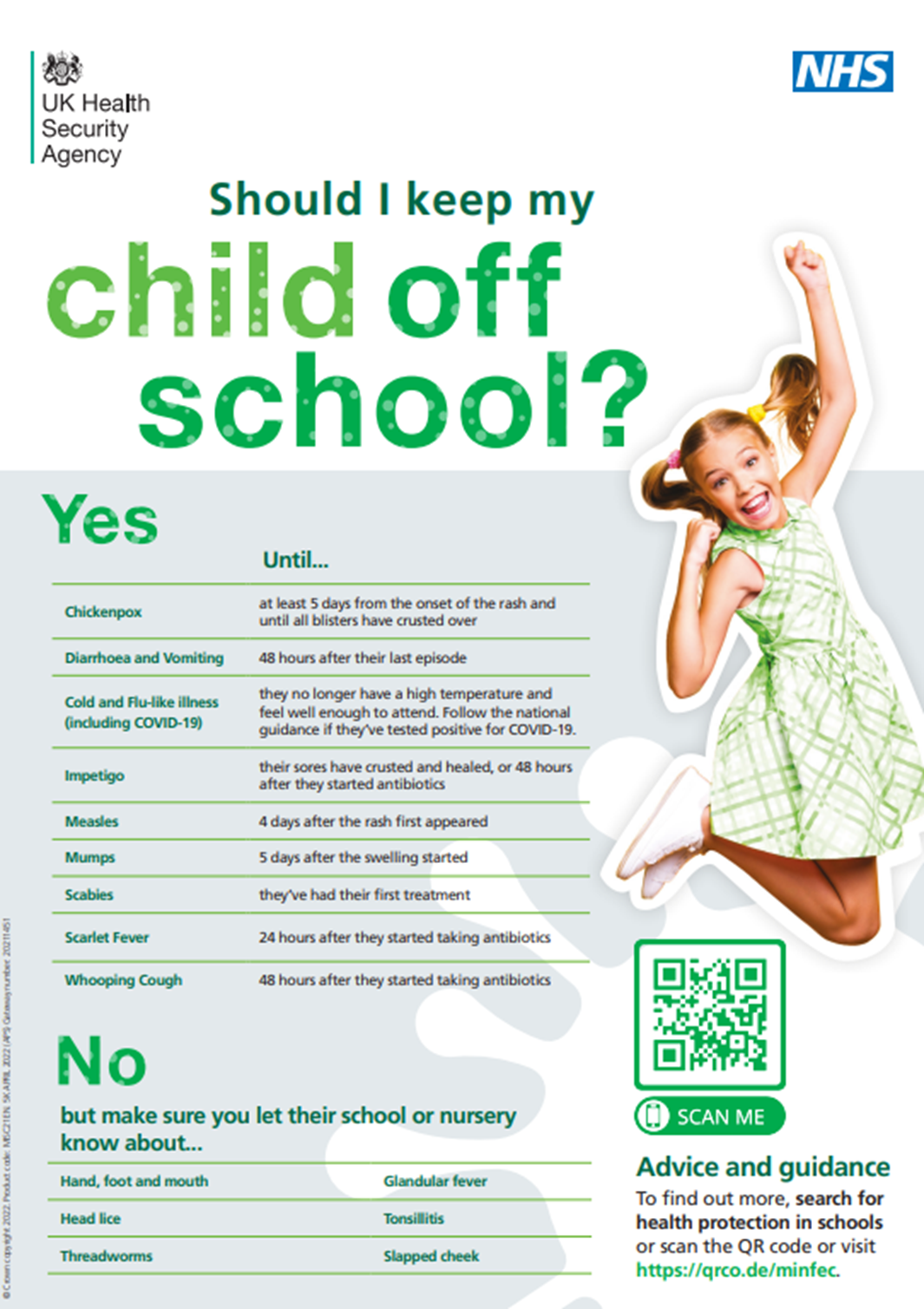 If you are unsure if a child should be kept off school due to illness, the guide below may help to decide. If you need any further assistance, please ring the school office and we will be happy to help.