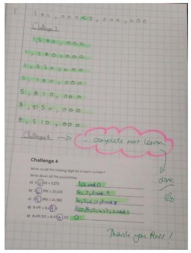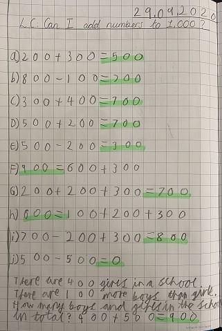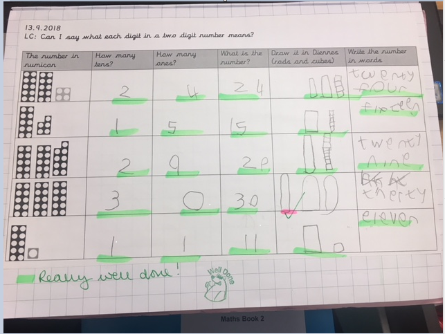 At the start of each new topic, pupils complete a pre-unit assessment, this is used by the teacher to assess the pupil’s retained learning and any gaps that need to be closed, whether this is on a whole class basis or through small group interventions. The pre-unit assessment should be the topic test for the year before, e.g., the pupils in Year 5 about to start addition, would complete the Year 4 White Rose addition assessment. This would then be marked and stuck into the pupil’s book.