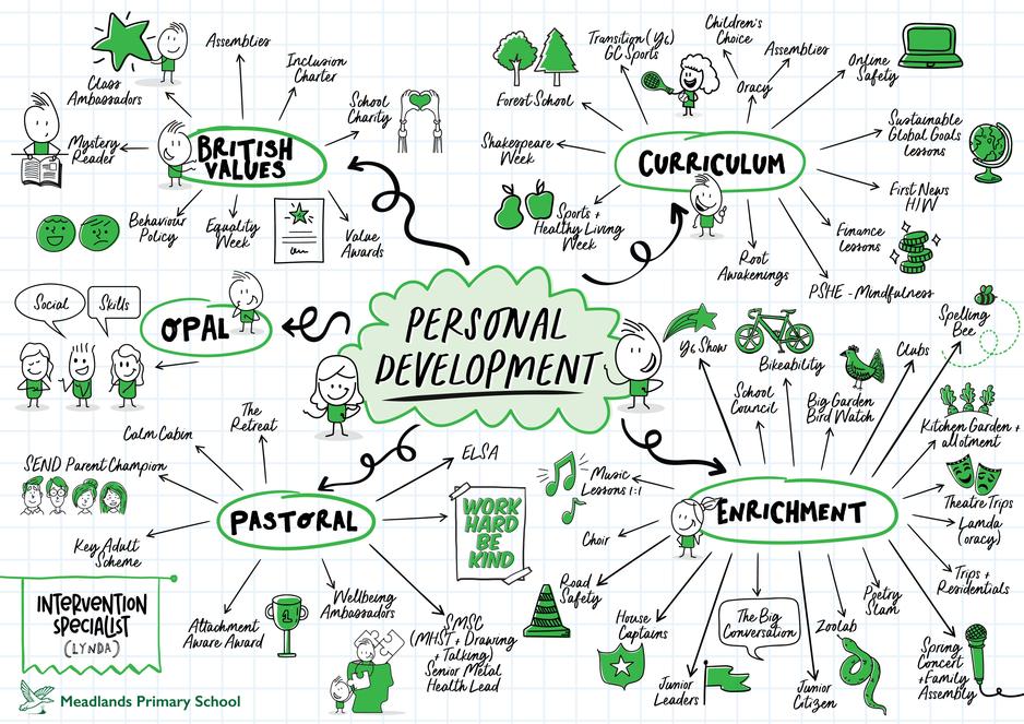 At Meadlands, learning goes beyond the curriculum with varied and plentiful opportunities for children to develop as confident, responsible young people. Please take a look at our mind map, detailing the opportunities available.